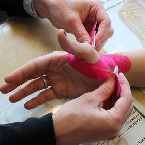استفاده از نوارهای ورزشی در محدود کردن دامنه حرکتی عضلات و مفاصل خاص می‌تواند به بهبود سریع‌تر بدن کمک کند. همچنین می تواند به عنوان آتل برای مفاصل رگ به رگ شده عمل کند، که به بهبود آسیب بیانجامد. با فشرده کردن ماهیچه، نوار ورزشی می تواند به کاهش تورم کمک کند، اینگونه درد را کاهش می دهد و از آسیب بیشتر جلوگیری می کند.